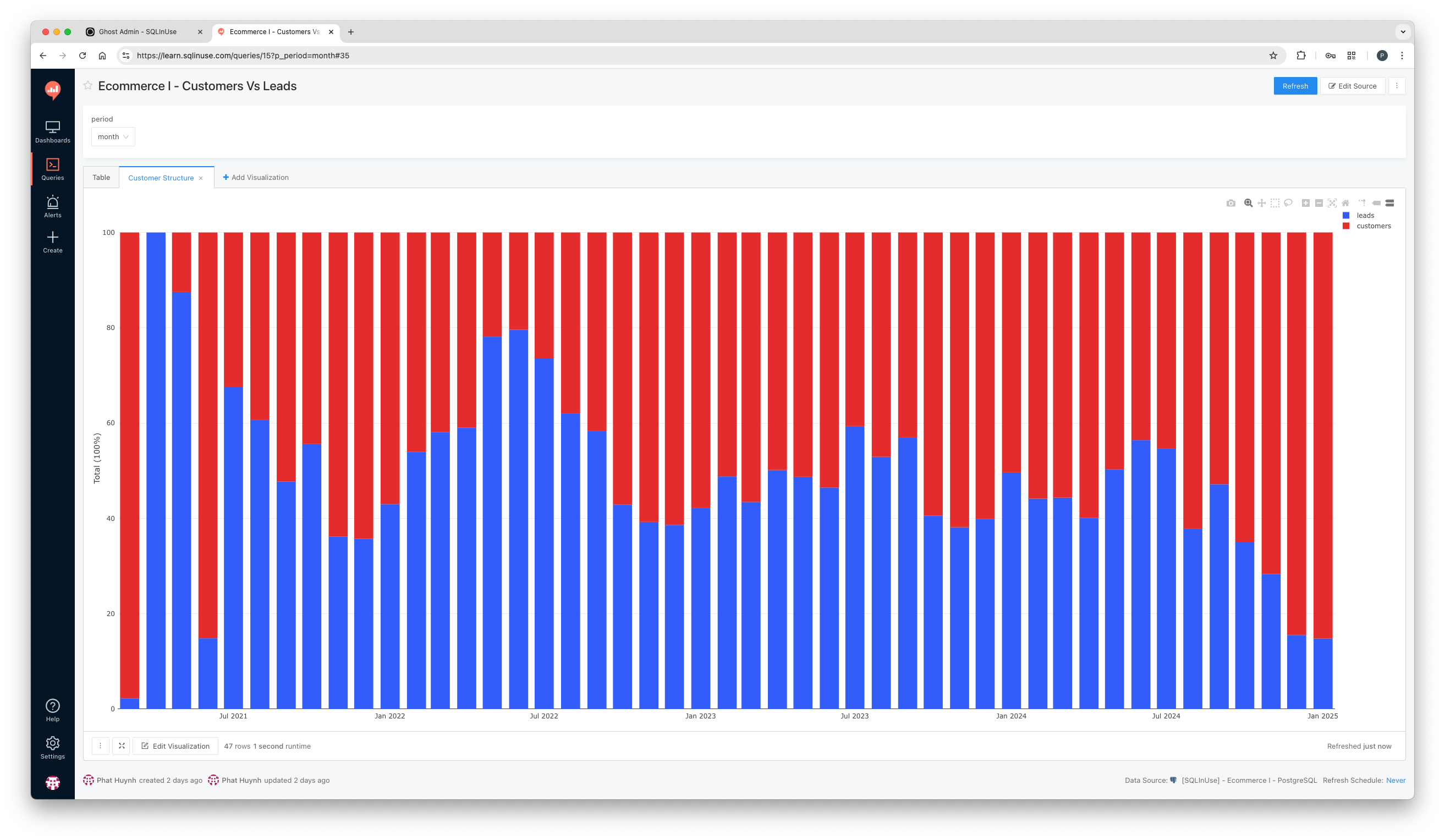 - Hoặc bạn có thể truy cập thẳng Redash để thực hành SQL và tải dữ liệu. Chọn