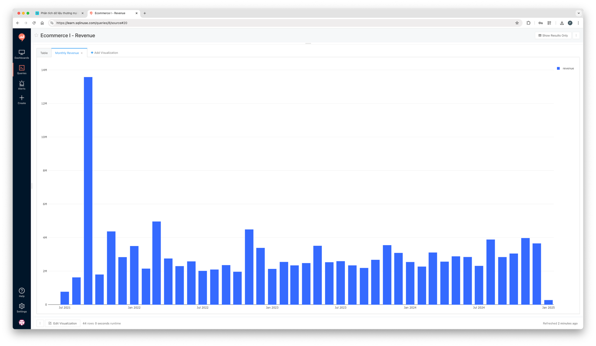 Một câu truy vấn đơn giản để trích xuất doanh thu theo tháng của doanh nghiệp.
